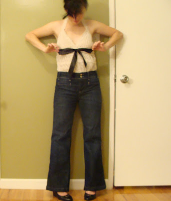 Below are some personal favorite ways to wear the jacket. I tend to like the scarf and jacket look. I've included a pic of myself wearing a denim jacket put together with a printed scarf, white tee, black pants and...well, I put on these brown booties..however this outfit could go with: flats (they matched some mustard ones I have), knee high black boots, black clogs (heels), or tan oxford laceups...I could go on...